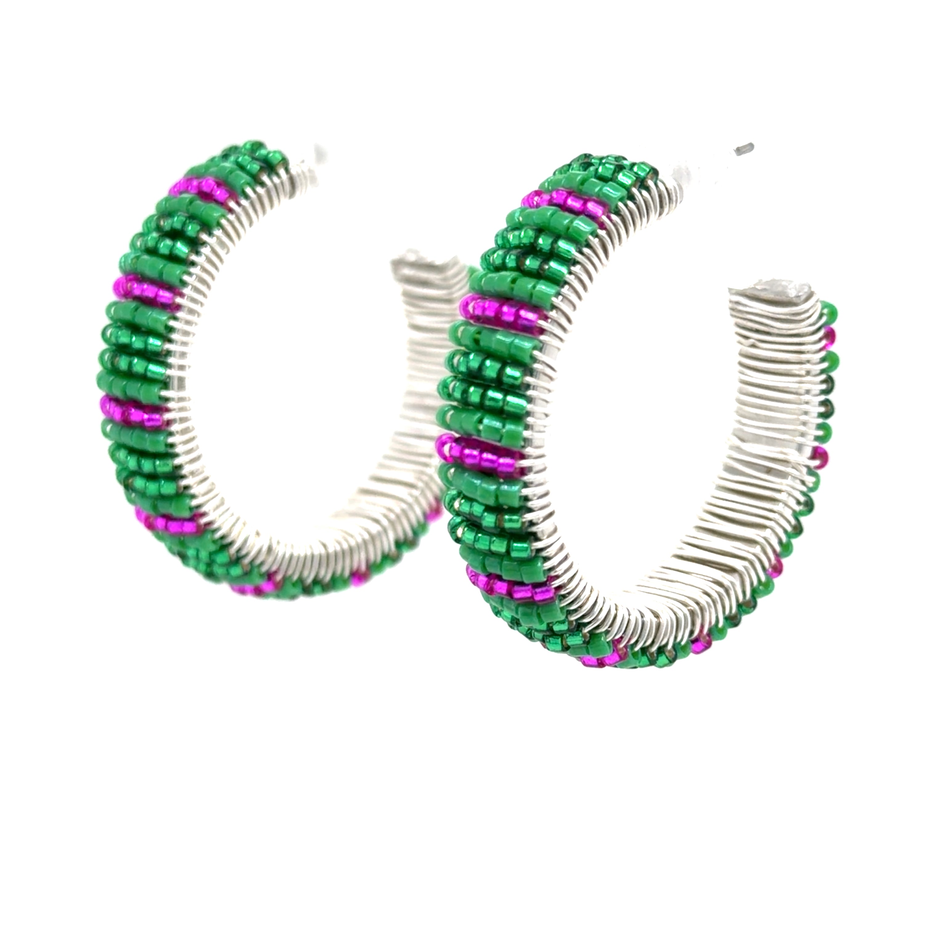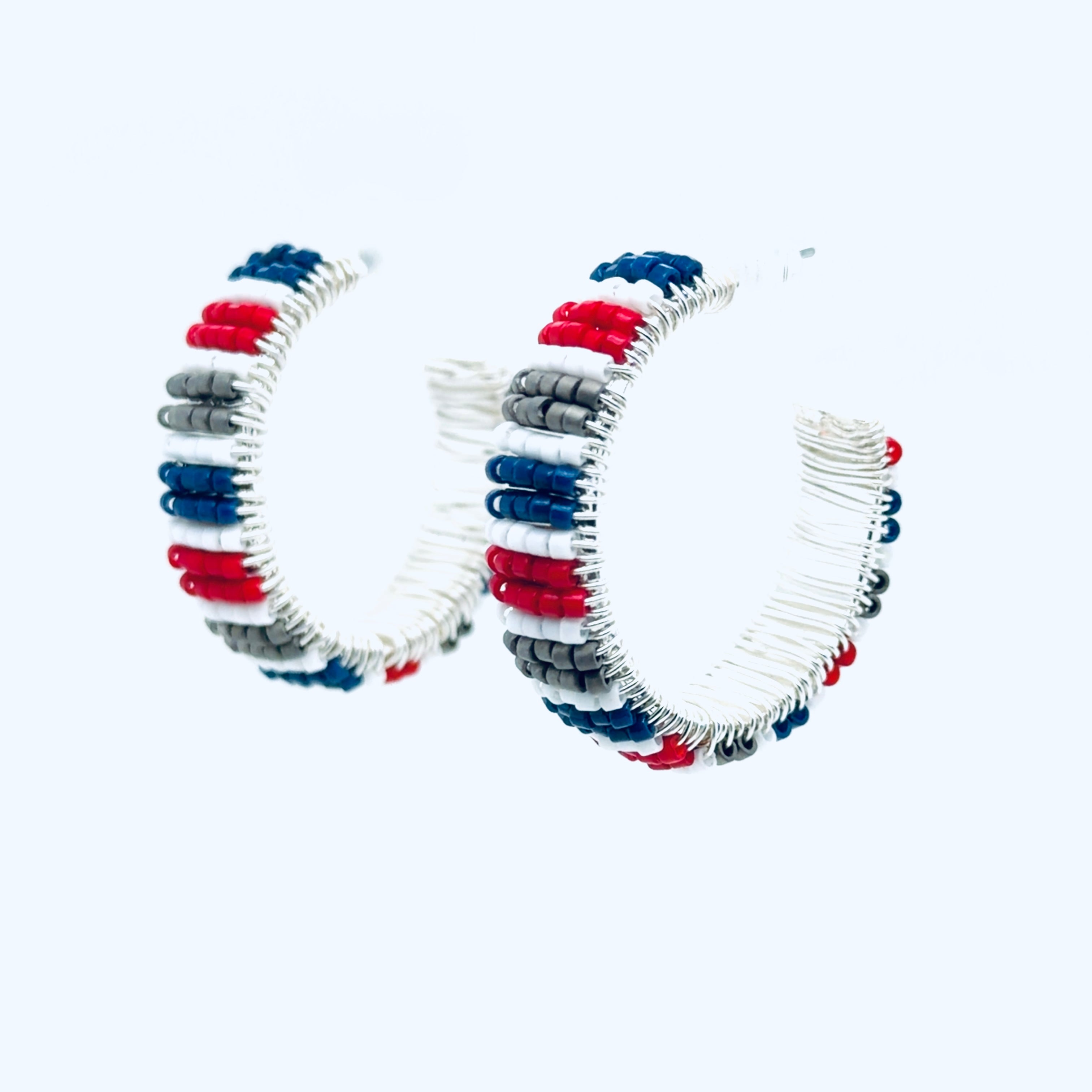 Elevate your style with our handcrafted Maeven in Me Signature Beaded Hoops. These versatile accessories feature high-quality metal hoops adorned with intricately arranged beads, making them the perfect statement piece for any outfit or occasion.
