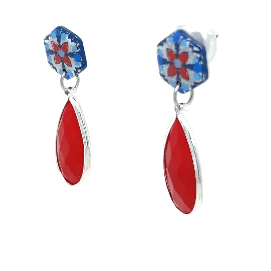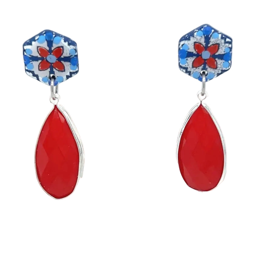 Blue & Red Dangle Earrings With Tile Detail Medium