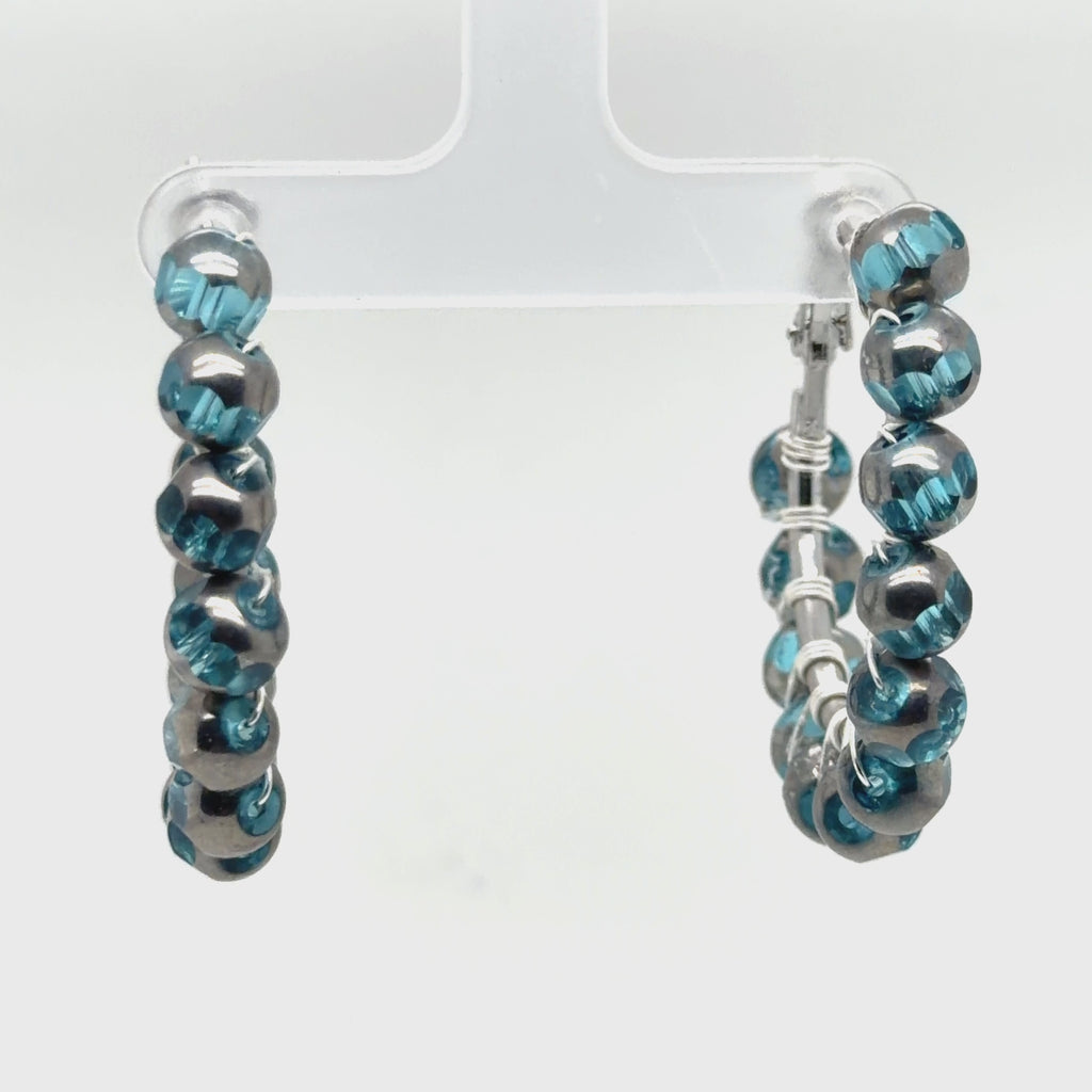 Aqua Crystal Beaded Hoop Earrings - Small