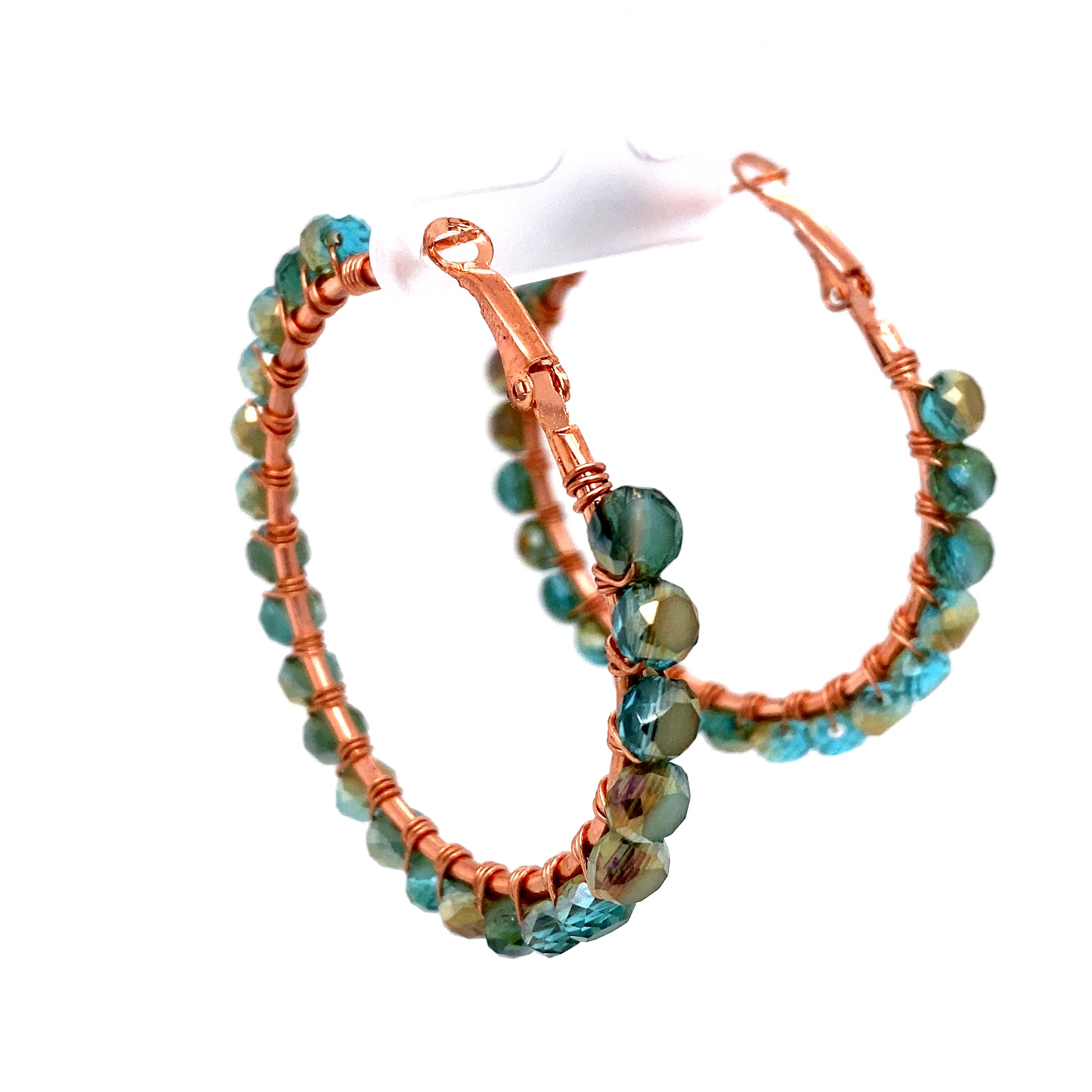 Uniquely handmade with aquamarine beads, these hoops are stunning, super-lightweight, and comfortable. Precise wrapping techniques are used to secure these charming aquamarine beads to the rose gold plated stainless steel hoops. They are an excellent fashion accessory to spice up any occasion. These earrings add pizzazz to just about any occasion – treat yourself to these beauties and show the world you have AMAEZING taste!