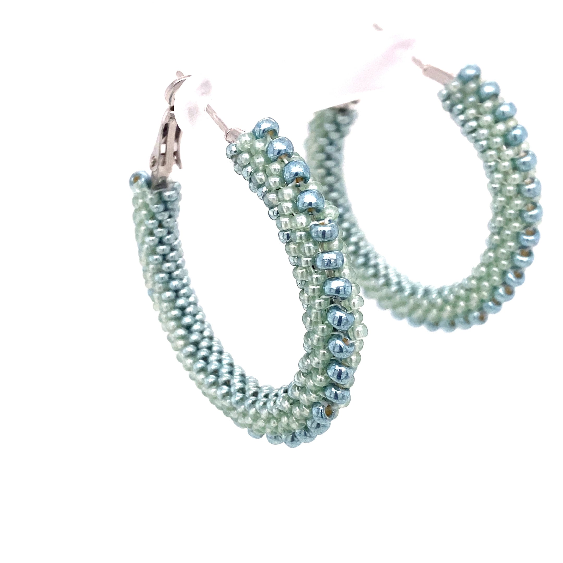 These aquamarine beads are the perfect touch for these bold hoops. Meticulous wrapping techniques are repeated to secure these captivating aquamarine beads to the silver plated stainless steel hoops. Spice up your next holiday or vacation with these beauties. These eye-catching lightweight earrings show everyone that you have AMAEZING taste!