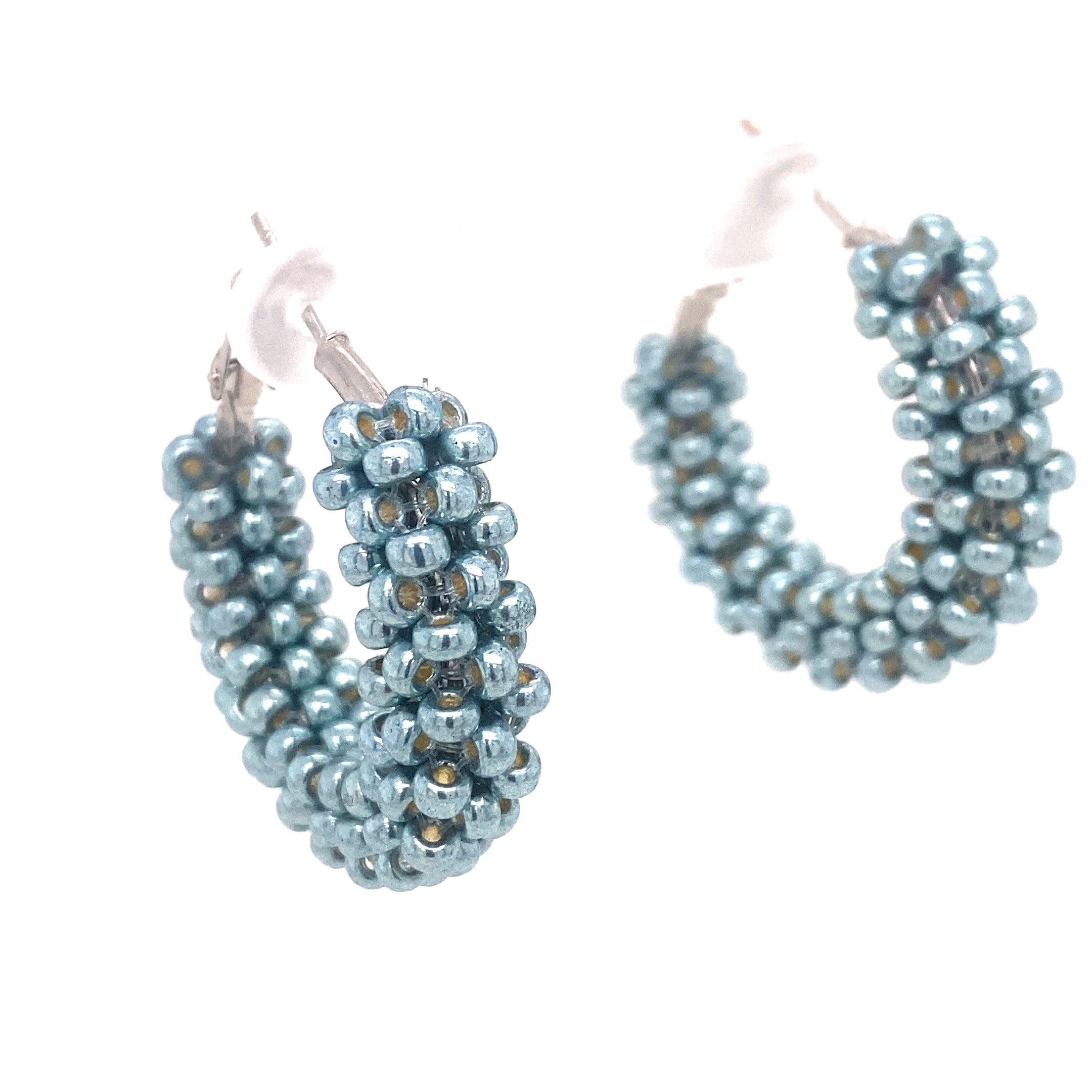 Uniquely handmade with aquamarine beads, these hoops are stunning, super-lightweight, and comfortable. Meticulous wrapping techniques are repeated to secure these captivating aquamarine beads to the silver plated stainless steel hoops. They are an excellent fashion accessory to spice up any occasion. These eye-catching lightweight earrings show everyone that you have AMAEZING taste!