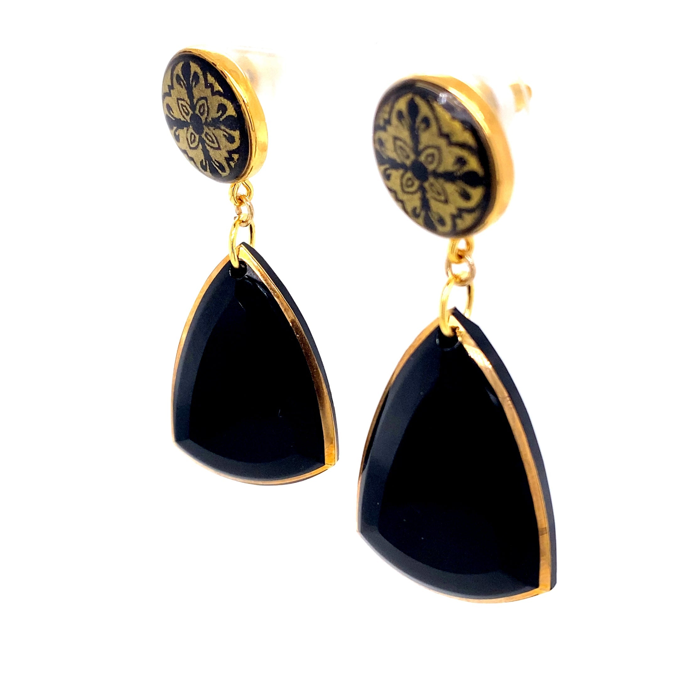 Beautiful assorted shaped black & gold tile detail make these dangling earrings stand out! Our clay dangling earrings are produced with bright and beautiful colored polymer clay. The clay color is hand mixed to create this vibrant shade of black & gold. They are an excellent fashion accessory to spice up any occasion. These eye-catching lightweight earrings show everyone that you have AMAEZING taste!