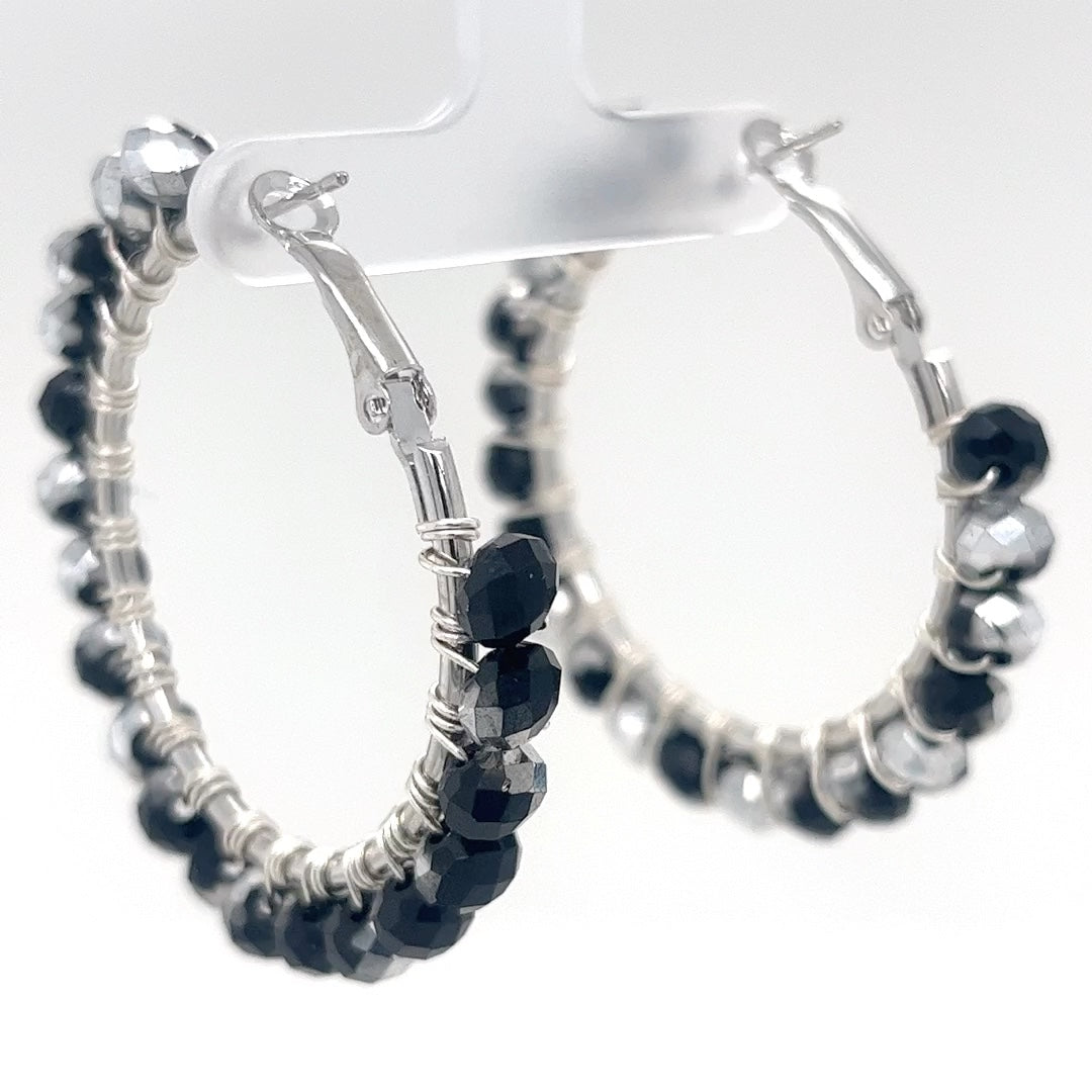 These black & silver beads are the perfect touch for these bold hoops. Meticulous wrapping techniques are repeated to secure these captivating black & silver beads to the silver plated stainless steel hoops. Spice up your next holiday or vacation with these beauties. These sophisticated and bold statement earrings also make the perfect gift to that special person with AMAEZING taste!