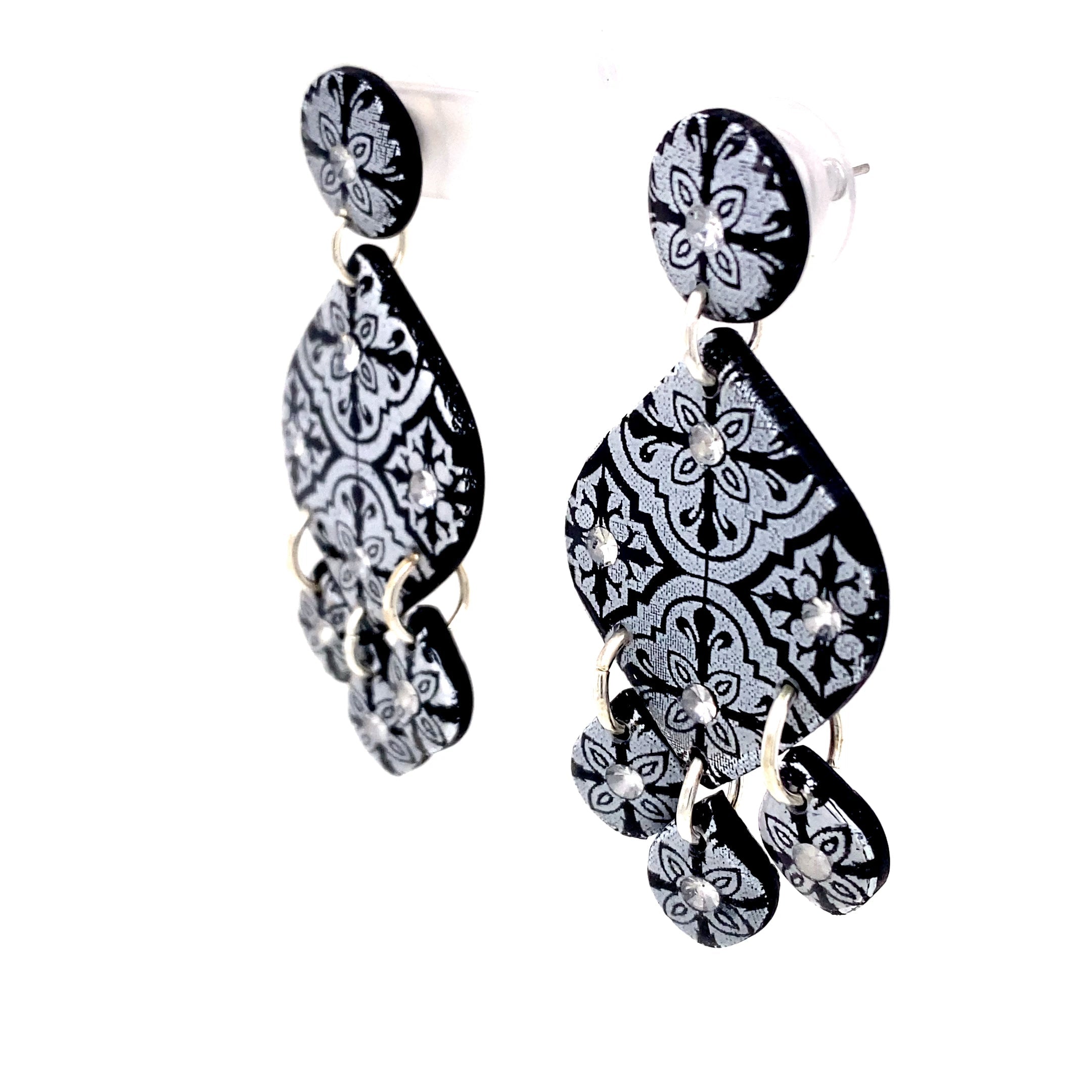 Black & Silver Dangle Earrings With Tile Detail Large