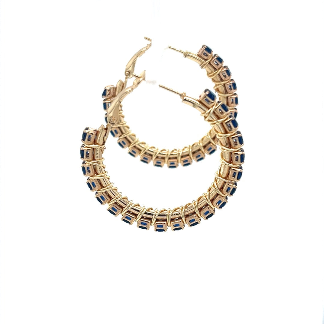 Gorgeous blue rhinestones and attention to detail give these hoops a bold and sophisticated look. Our gold plated stainless steel hoop earrings are created with an intricate wrapping technique that secures the beads to the hoops. They are an excellent fashion accessory to spice up any occasion. These earrings add pizzazz to just about any occasion – treat yourself to these beauties and show the world you have AMAZING TASTE!