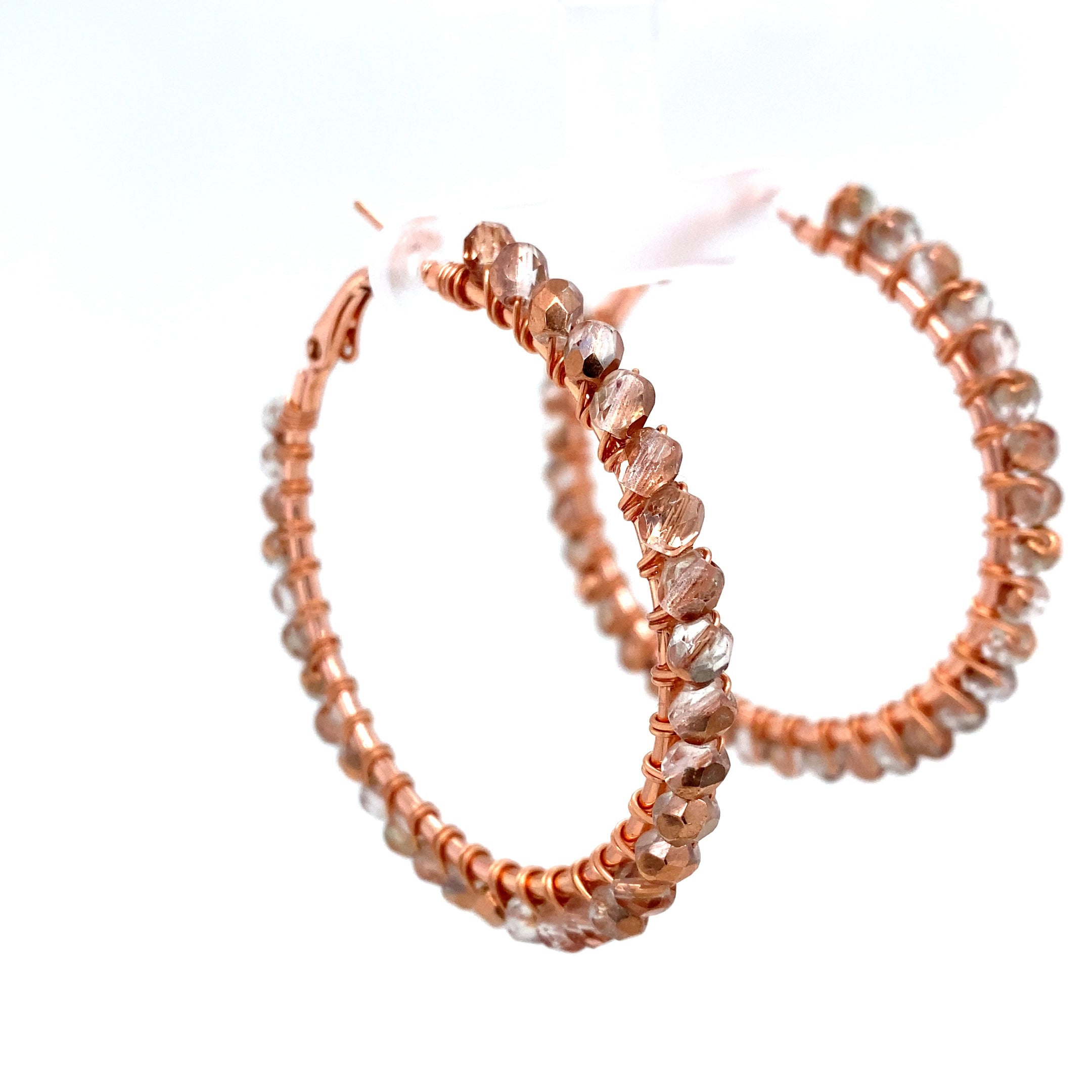 Gorgeous clear beads and attention to detail give these hoops a bold and sophisticated look. Precise wrapping techniques are used to secure these charming clear beads to the rose gold plated stainless steel hoops. They're an ideal accessory for holidays, date nights, or brunch with friends. These eye-catching lightweight earrings show everyone that you have AMAEZING taste!