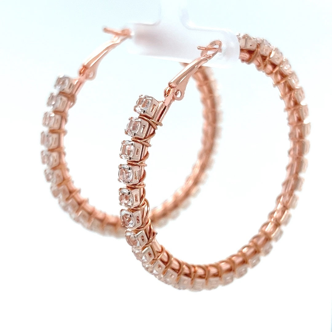 Clear Rhinestone Rose Gold Hoop Earrings Large