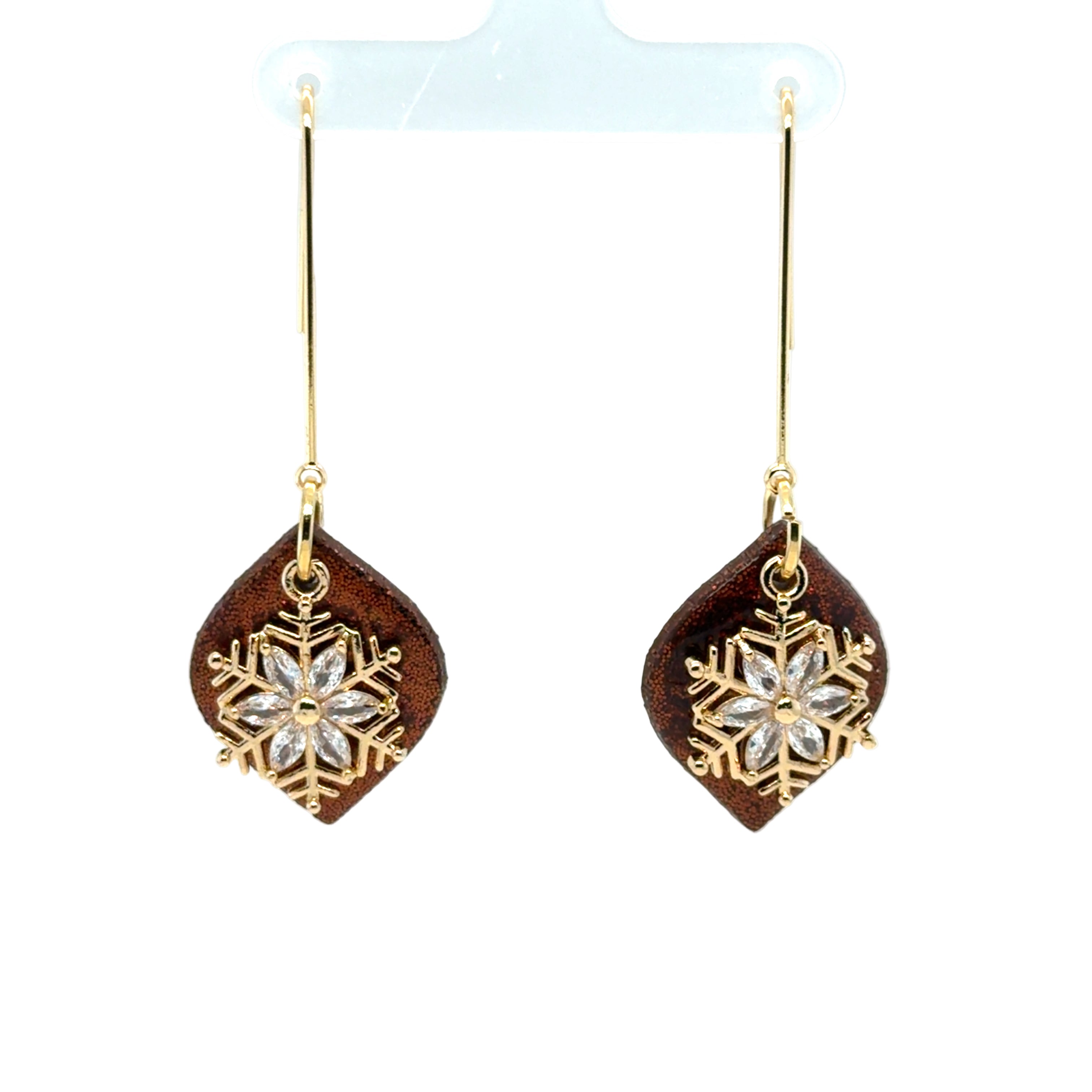 Crystal Snowflake Brown Dangle Earrings
