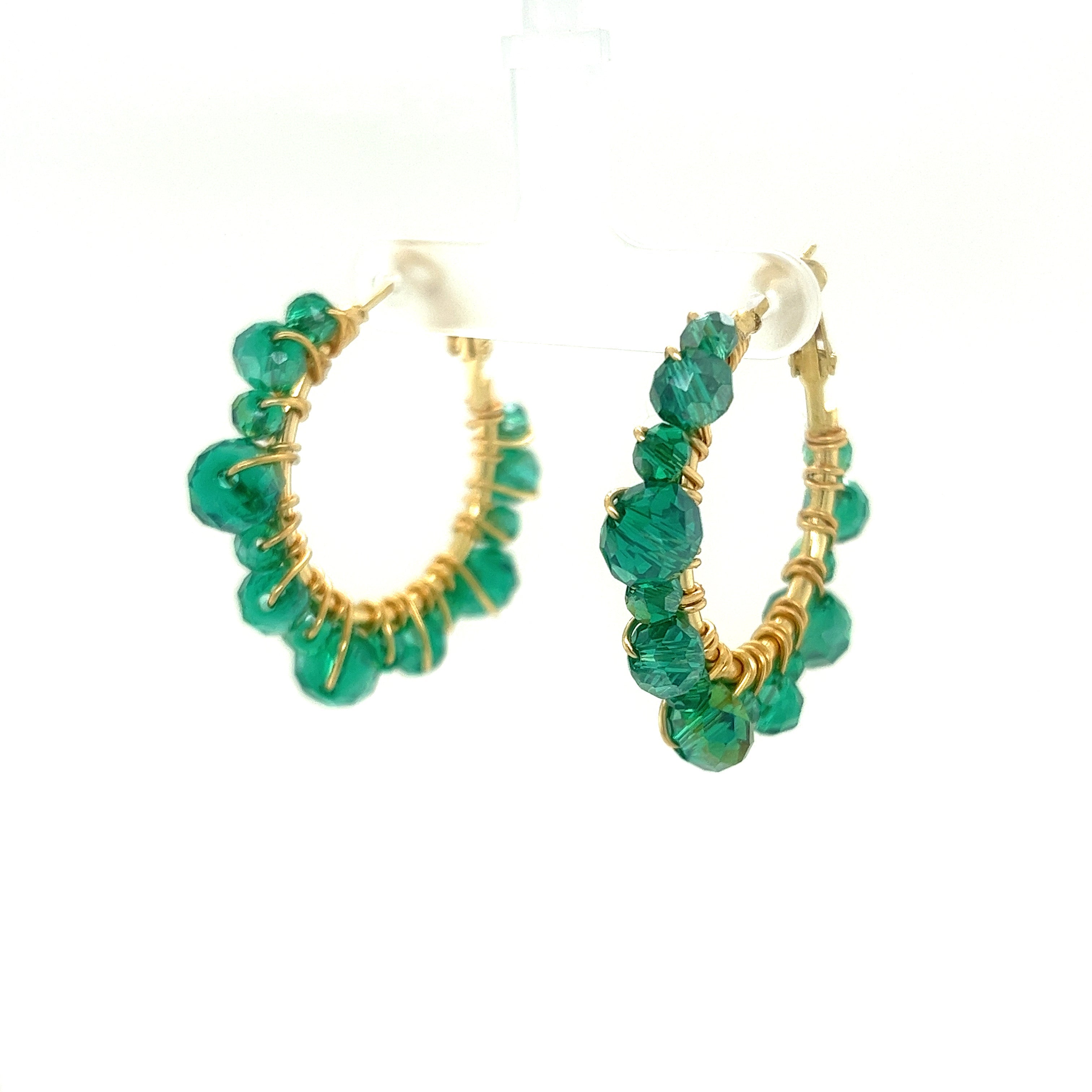 These green beads are the perfect touch for these bold hoops. Precise wrapping techniques are used to secure these charming green beads to the gold plated stainless steel hoops. Spice up your next holiday or vacation with these beauties. These dazzling earrings will be just the right touch to add to your outfit and let them know YOU have AMAEZING Taste!
