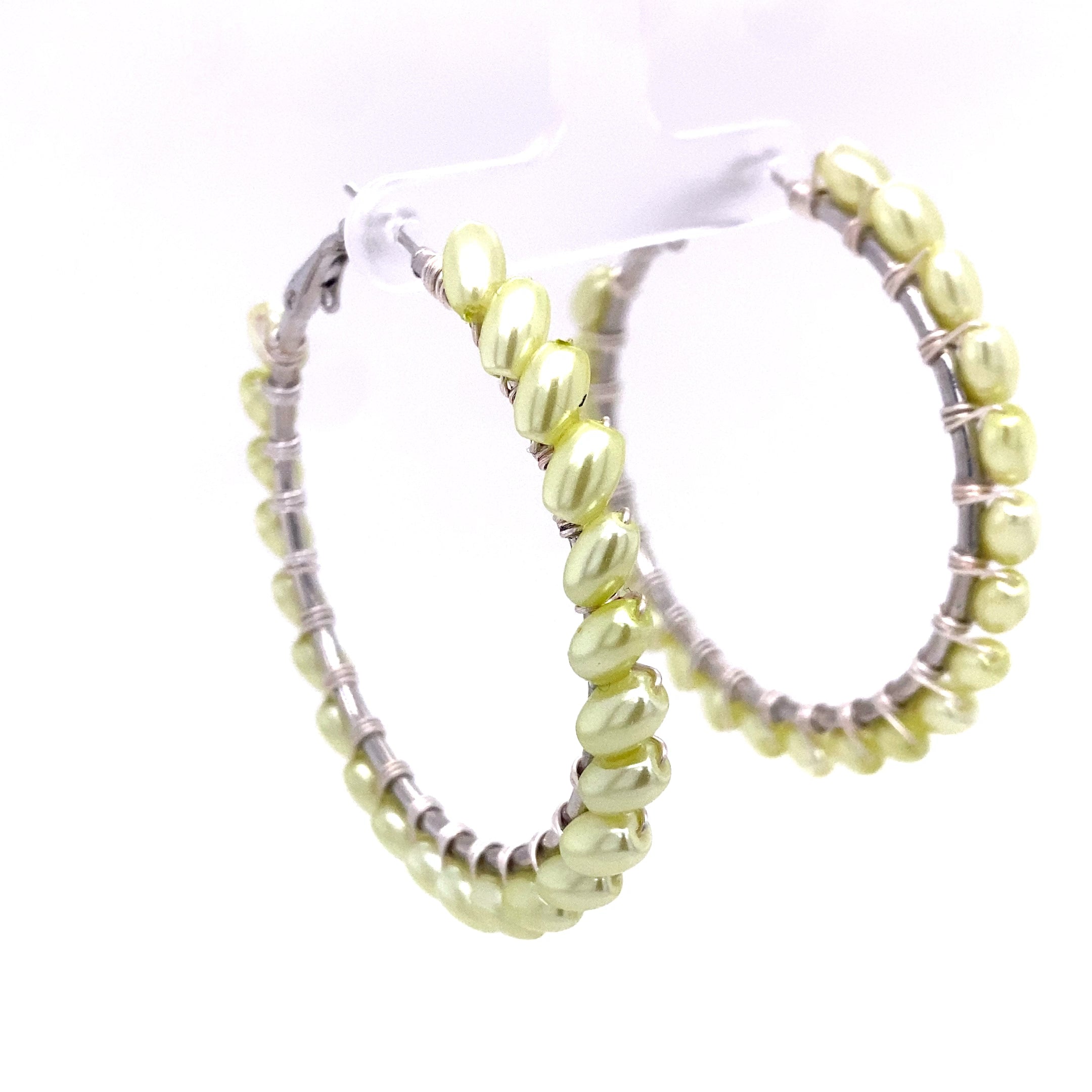 Beautiful green beads make these hoops stand out! Meticulous wrapping techniques are repeated to secure these captivating green beads to the silver plated stainless steel hoops. They are the perfect accessory for any season, special event or get-together. These dazzling earrings will be just the right touch to add to your outfit and let them know YOU have AMAEZING taste!