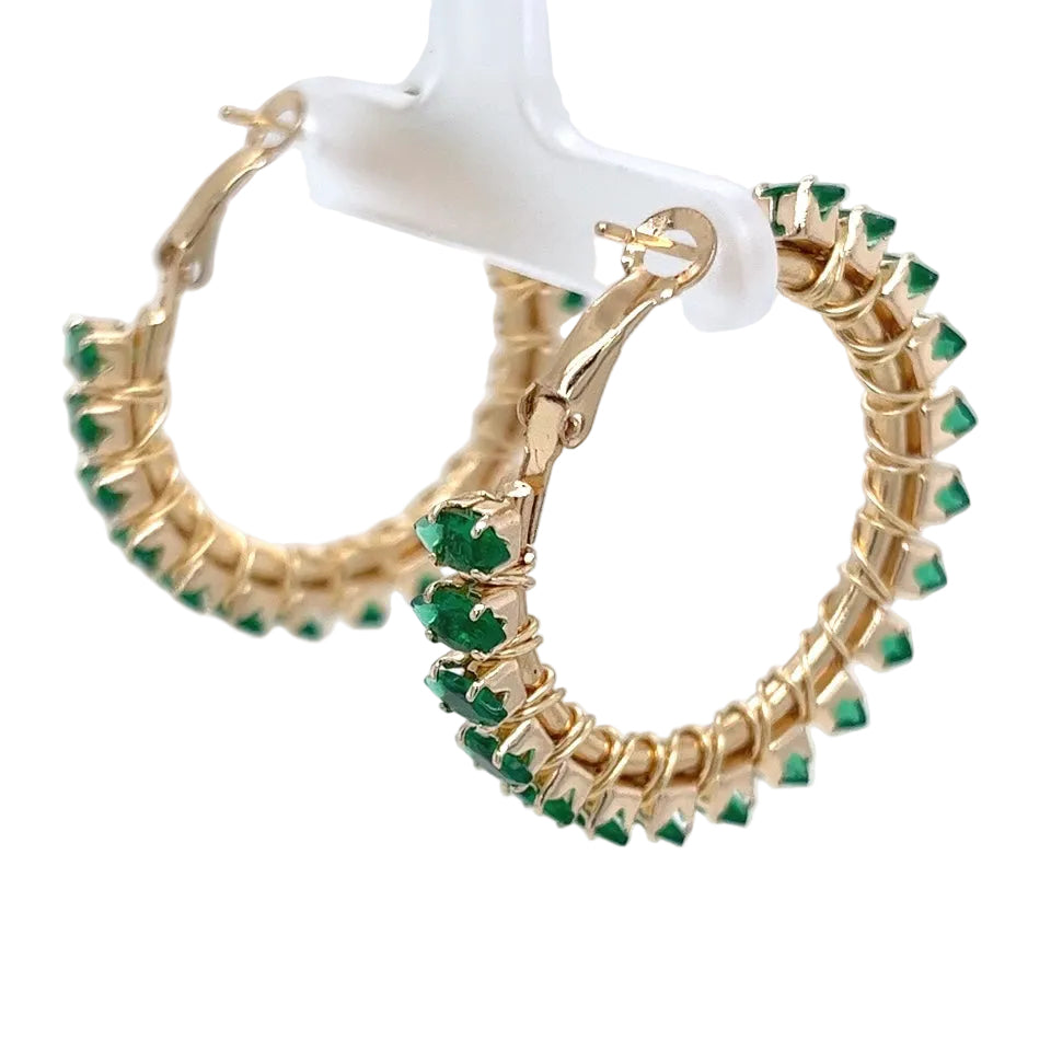 Green Rhinestone Gold Hoop Earrings Small