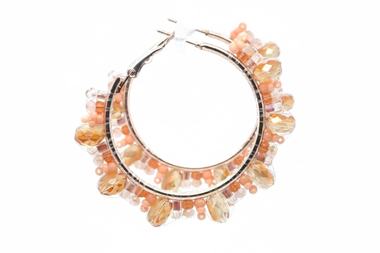 Multi- Colored Peach Beaded Gold Hoop Earrings - Medium