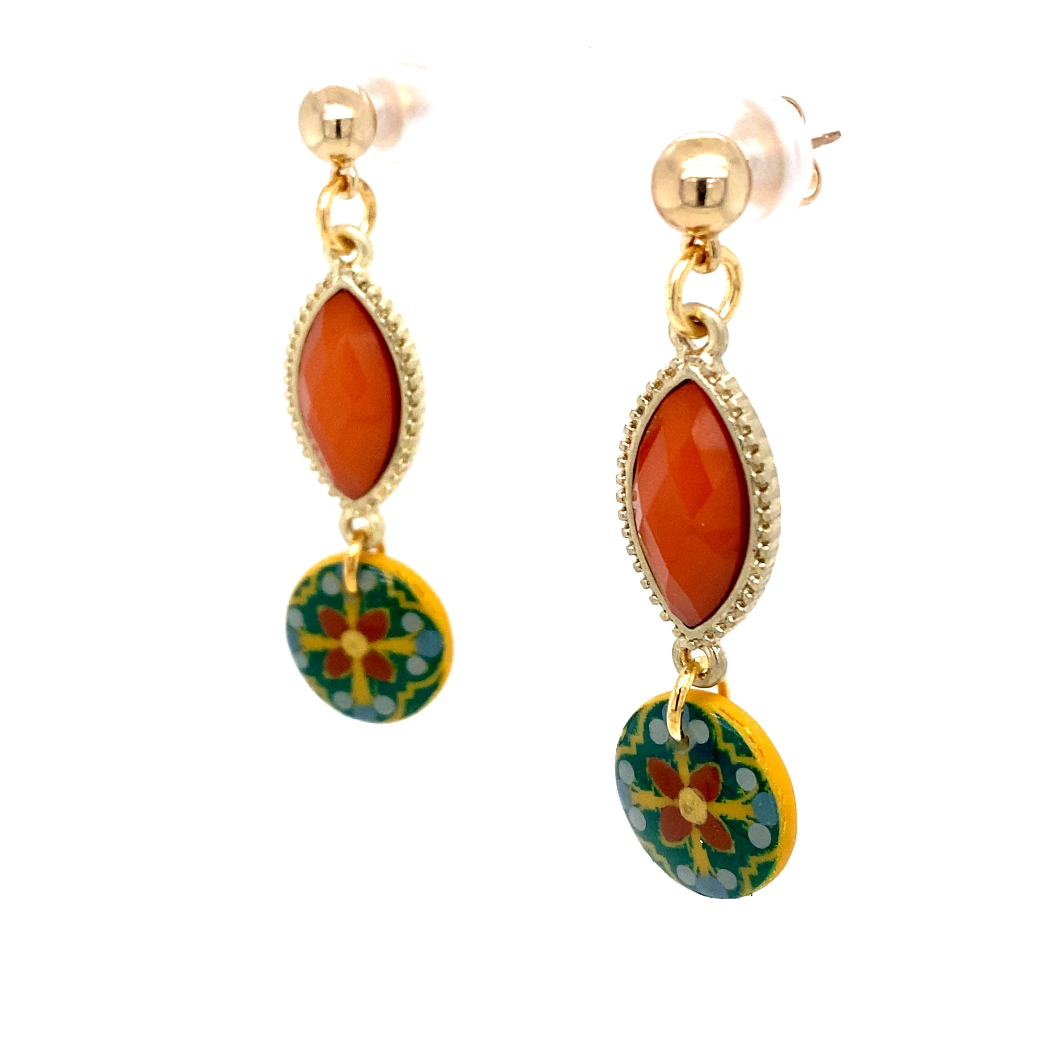 Orange & Green Dangle Earrings With Tile Detail Medium