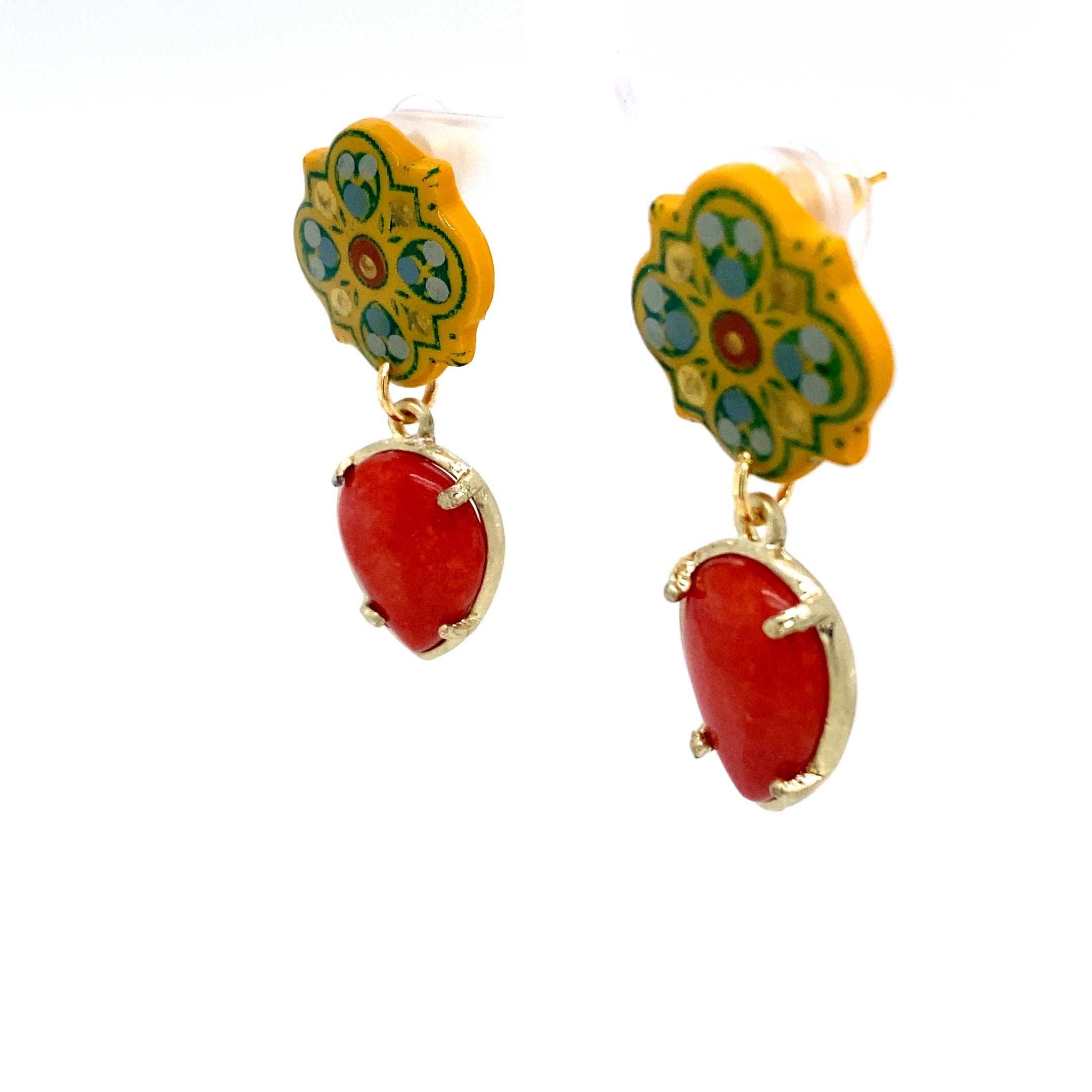Orange & Yellow Dangle Earrings With Tile Detail Medium