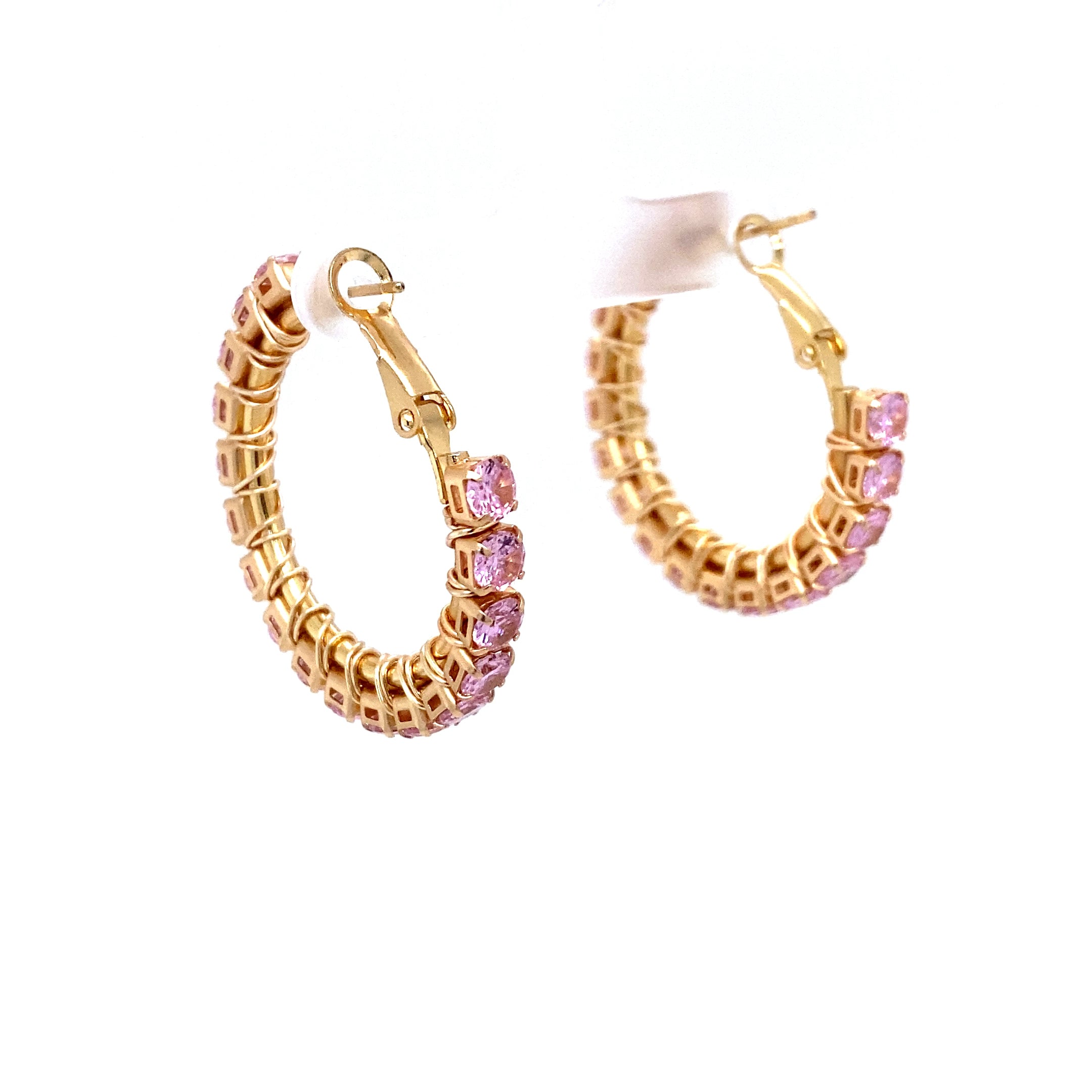 Pink & Gold Rhinestone Gold Hoop Earrings Small