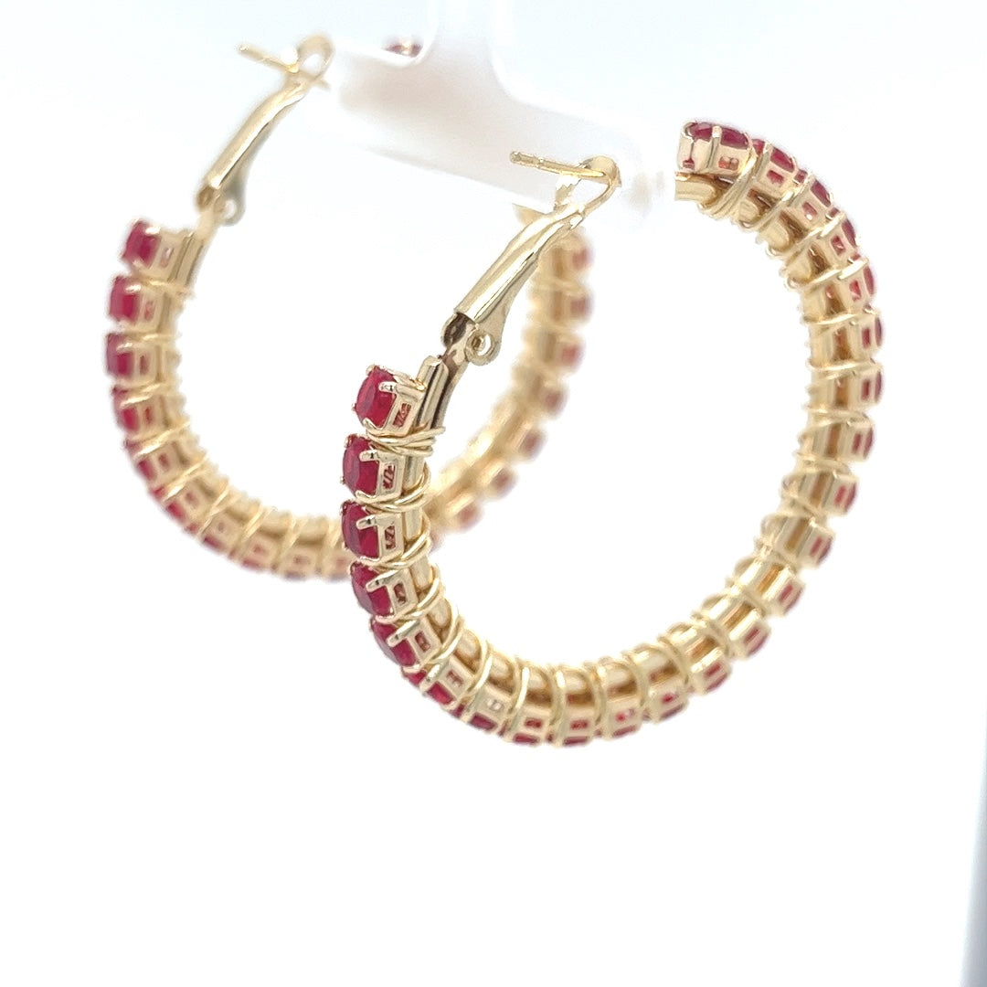 These red rhinestones are the perfect touch for these bold hoops. Precise wrapping techniques are used to secure these charming red rhinestones to the gold plated stainless steel hoops. They're an ideal accessory for holidays, date nights, or brunch with friends. These earrings add pizzazz to just about any occasion – treat yourself to these beauties and show the world you have AMAEZING taste!