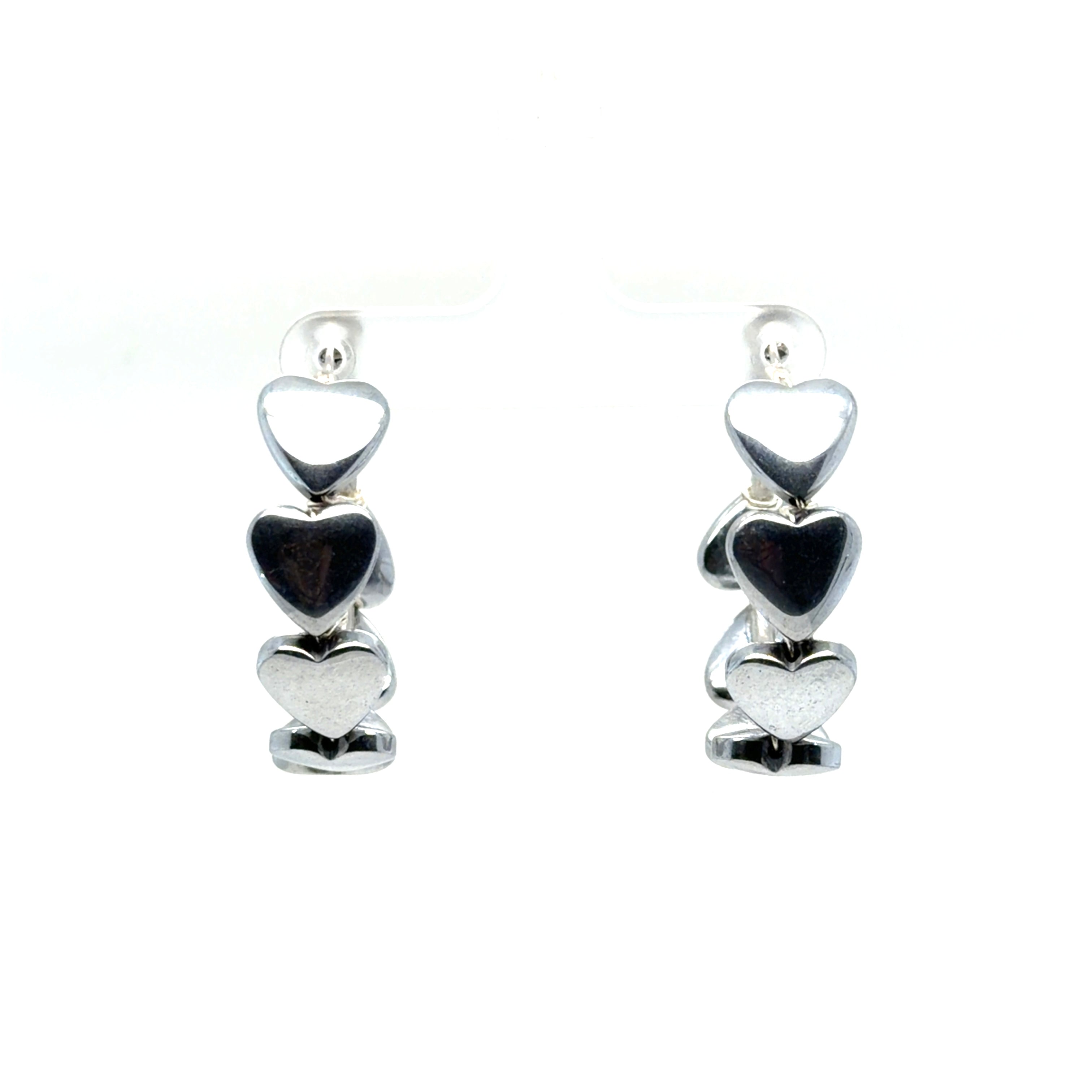 Elevate your accessory game with our Silver Heart Hoop Earrings. Expertly crafted, these stunning hoops feature a unique design adorned with charming heart-shaped accents that add a playful touch to a classic style. The sleek silver plating not only enhances their shine but also ensures durability for everyday wear.