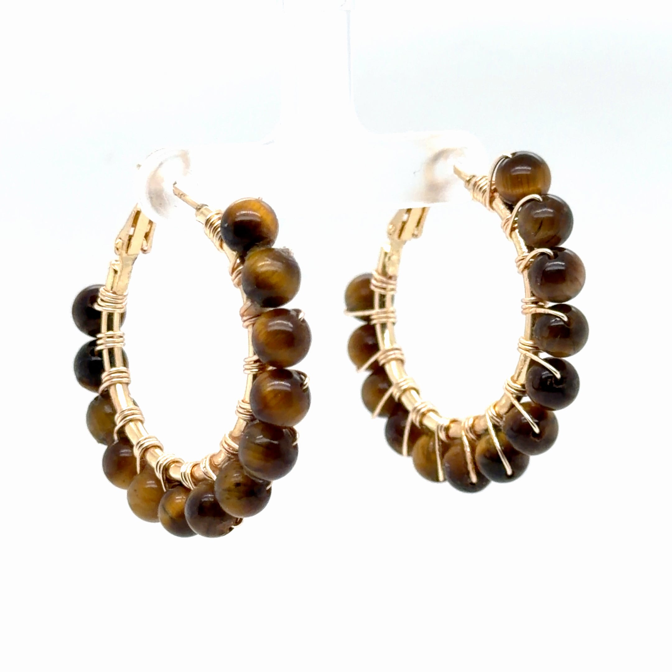 Embrace your unique style and let your personality shine with these beautiful Tiger Eye Beaded Hoop Earrings. Add them to your cart today and step out in confidence!