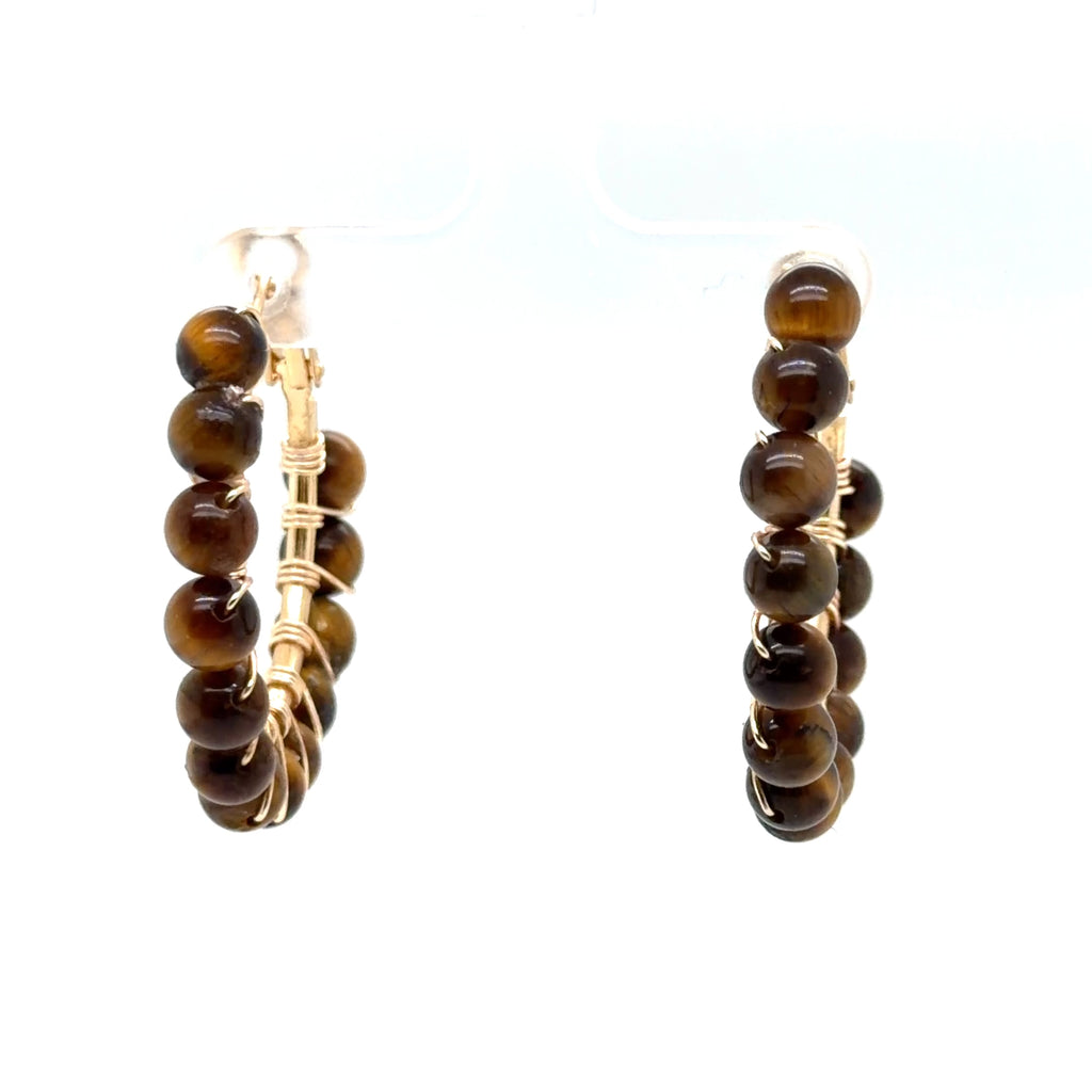 Tiger Eye Beaded Hoop Earrings - Small