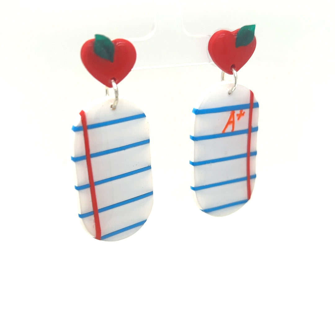 White & Blue Dangle Earrings With School Detail Large