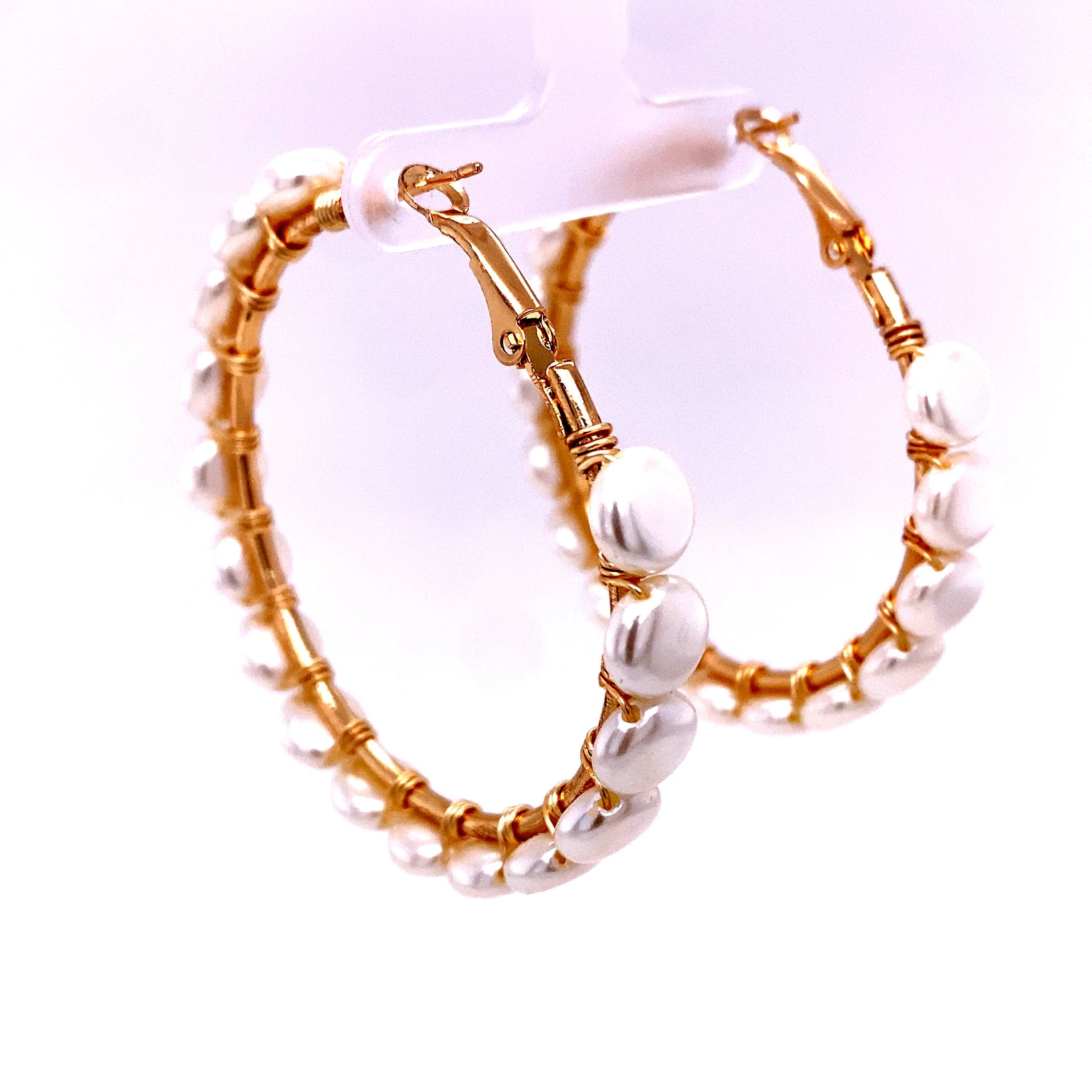 Beautiful white & gold beads make these hoops stand out! Meticulous wrapping techniques are repeated to secure these captivating white & gold beads to the gold plated stainless steel hoops. Spice up your next holiday or vacation with these beauties. These sophisticated and bold statement earrings also make the perfect gift to that special person with AMAEZING taste!