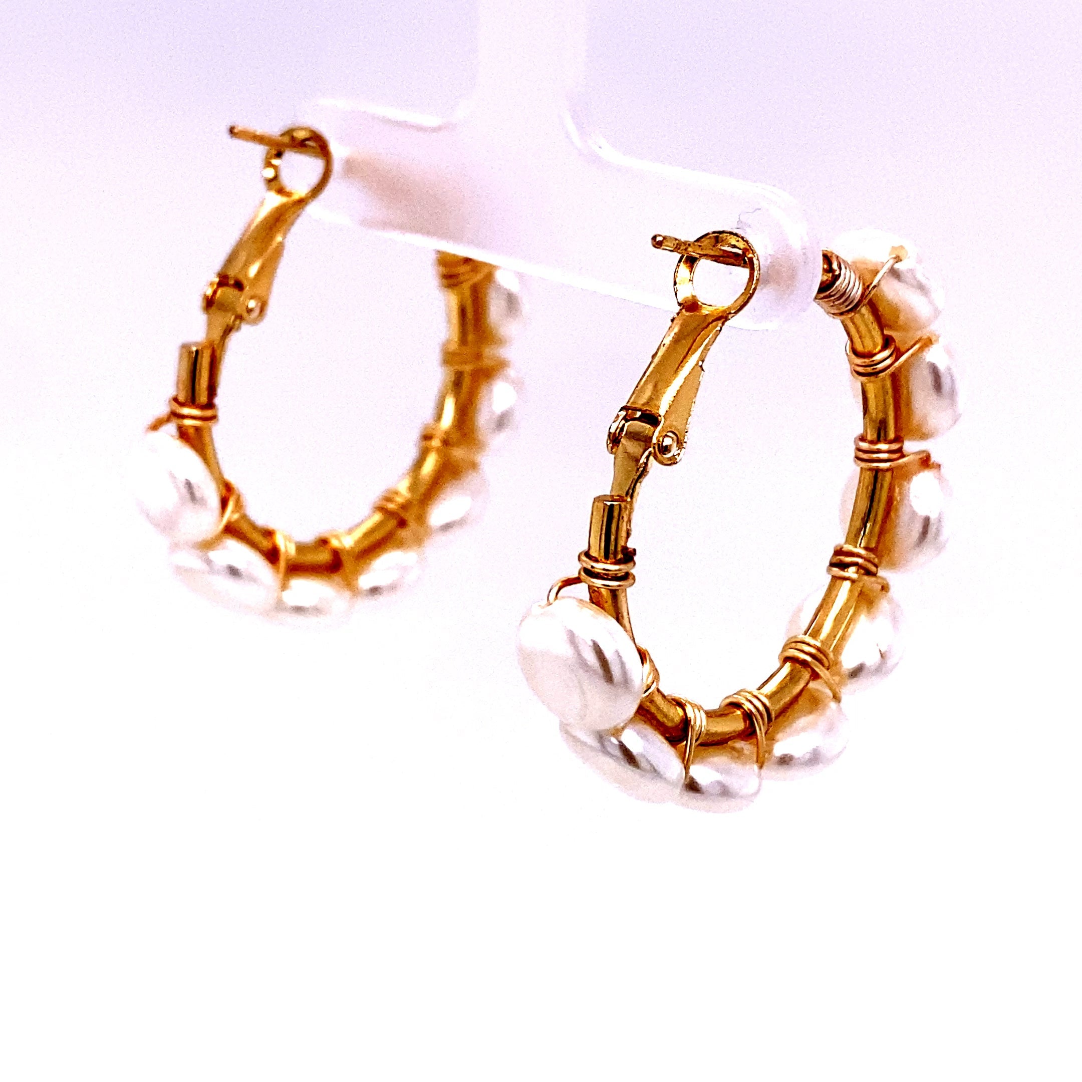 Uniquely handmade with white & gold beads, these hoops are stunning, super-lightweight, and comfortable. Precise wrapping techniques are used to secure these charming white & gold beads to the gold plated stainless steel hoops. They are an excellent fashion accessory to spice up any occasion. These earrings add pizzazz to just about any occasion – treat yourself to these beauties and show the world you have AMAEZING taste!