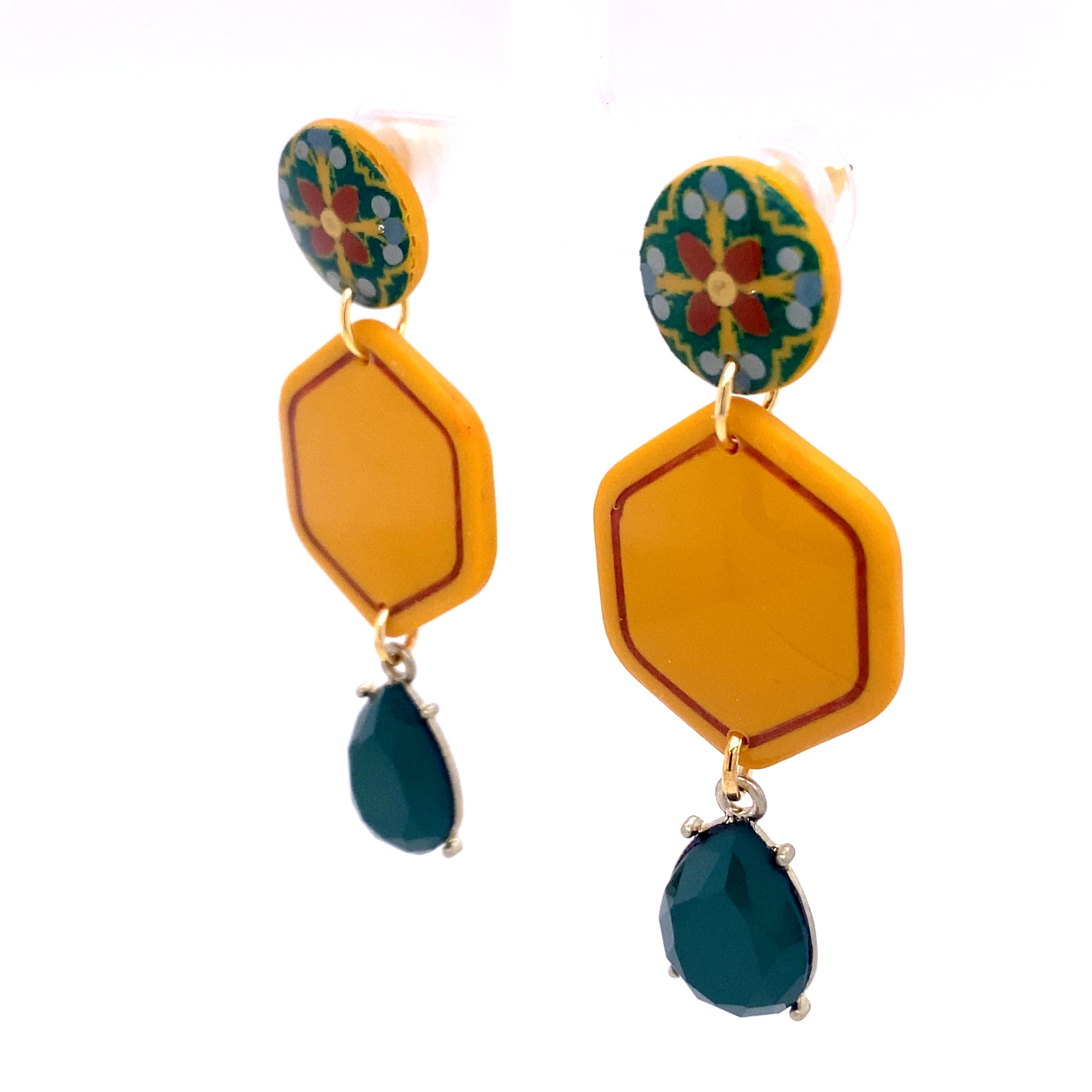 Yellow & Green Dangle Earrings With Tile Detail Large